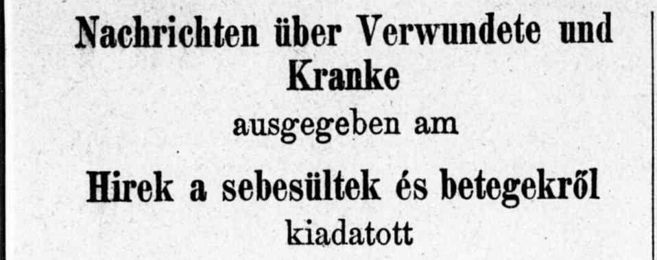 Beispiel aus einer der Verwundetenlisten Österreich-Ungarn (1914–1917)