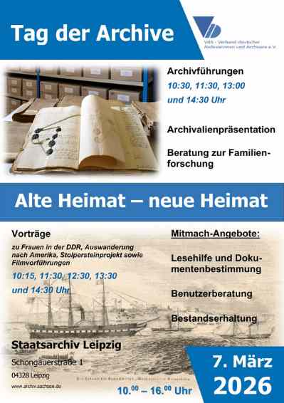 Schlagworte: Leipzig, Sächsisches Staatsarchiv, Tag der Archive, VdA, Heimat