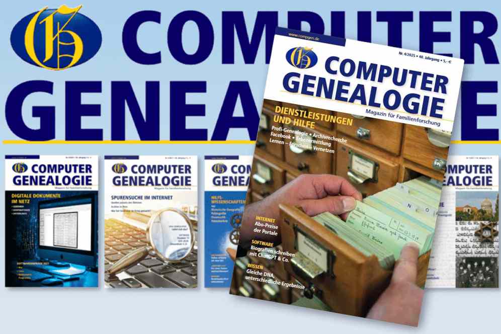 Das Magazin COMPUTERGENEALOGIE erscheint vier Mal jährlich, jeweils zum Ende eines Quartals. Die Redaktion berichtet über ein großes Spektrum von Themen aus allen Bereichen der Familienforschung. Ein Schwerpunkt liegt im Bereich Internet, Software und anderen computergestützten Projekten.