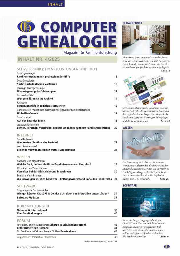 INHALT COMPUTERGENEALOGIE Nr. 4/2025